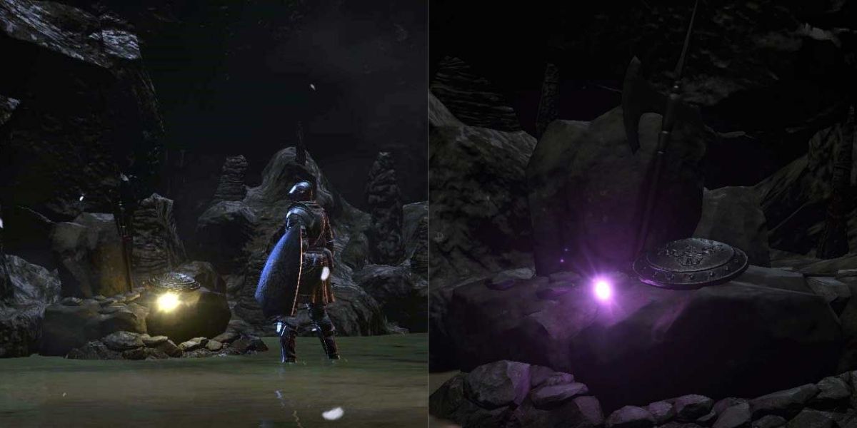 Unfortunately, they get separated and Horace ends up Hollowing, meaning he goes insane and will attack on sight. If you lot kill him and tell Anri where he was, they'll become and make a small shrine with Horace'southward weapon, shield, and a prism rock which you tin visit.